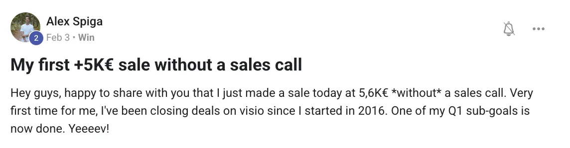 Verified Customer - Alex Spiga, Celebrates his first +5K€ sale without a sales call